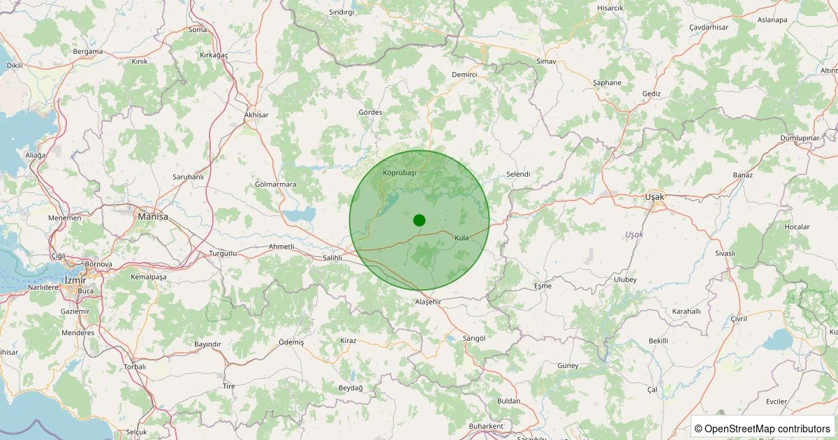 Son 7 gün içinde Kula - Gökçeören/İkioluklu noktasından 100 km yarıçap içerisinde meydana gelen diğer depremler: