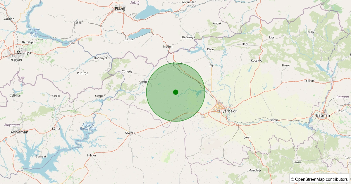 Son 7 gün içinde Ergani - Akçakale noktasından 100 km yarıçap içerisinde meydana gelen diğer depremler: