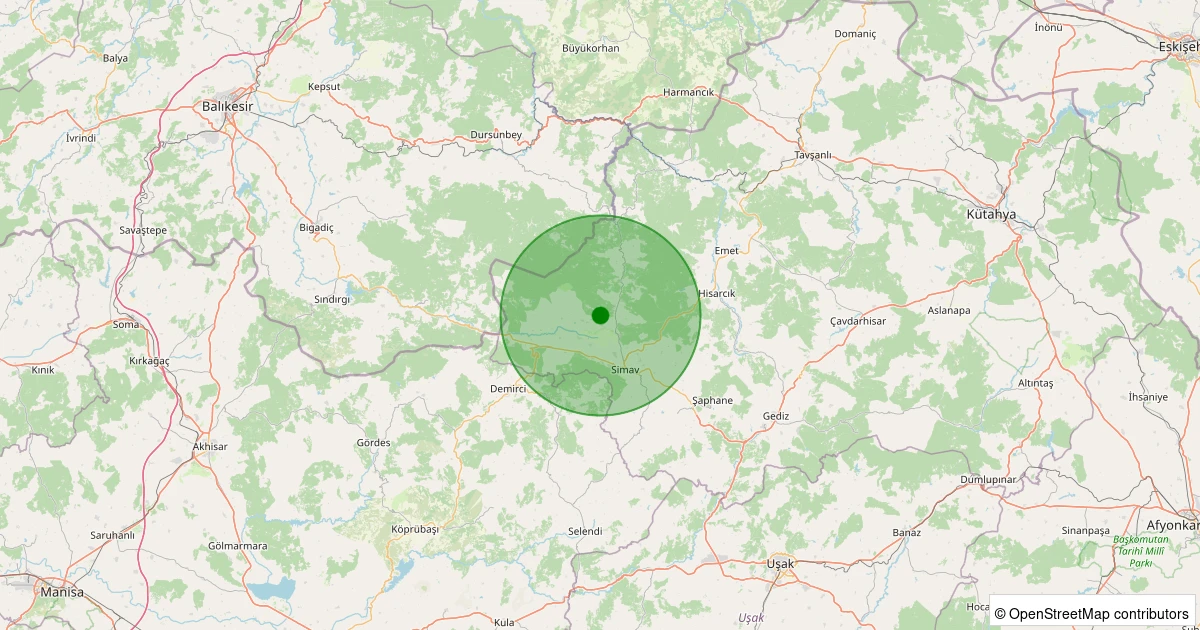 Son 7 gün içinde Simav - Güney/Cuma noktasından 100 km yarıçap içerisinde meydana gelen diğer depremler: