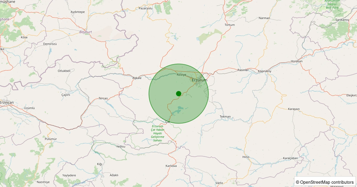 Son 7 gün içinde Palandöken - Kümbet noktasından 100 km yarıçap içerisinde meydana gelen diğer depremler: