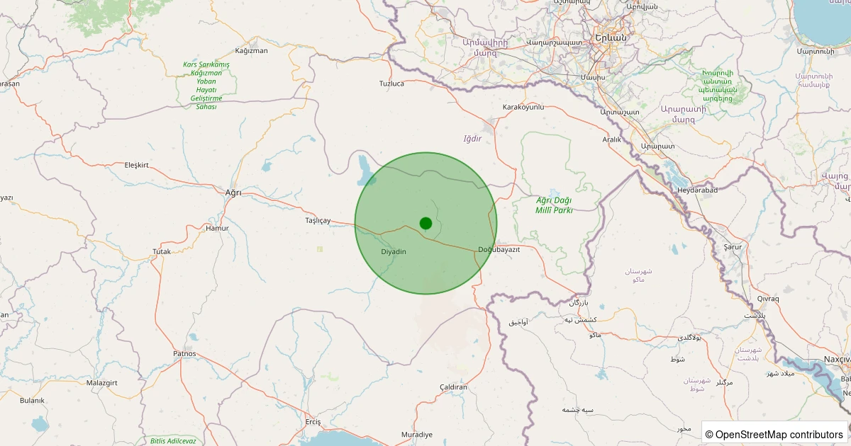 Son 7 gün içinde Doğubayazıt noktasından 100 km yarıçap içerisinde meydana gelen diğer depremler: