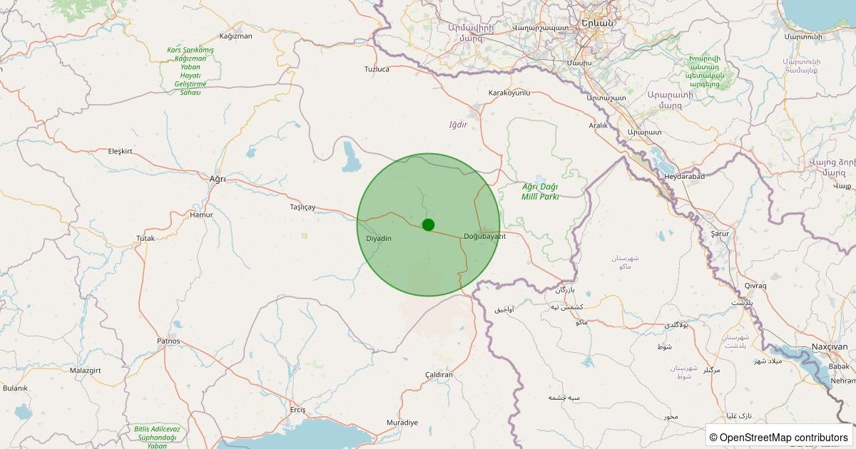 Son 7 gün içinde Doğubayazıt - Seslitaş Köyü noktasından 100 km yarıçap içerisinde meydana gelen diğer depremler: