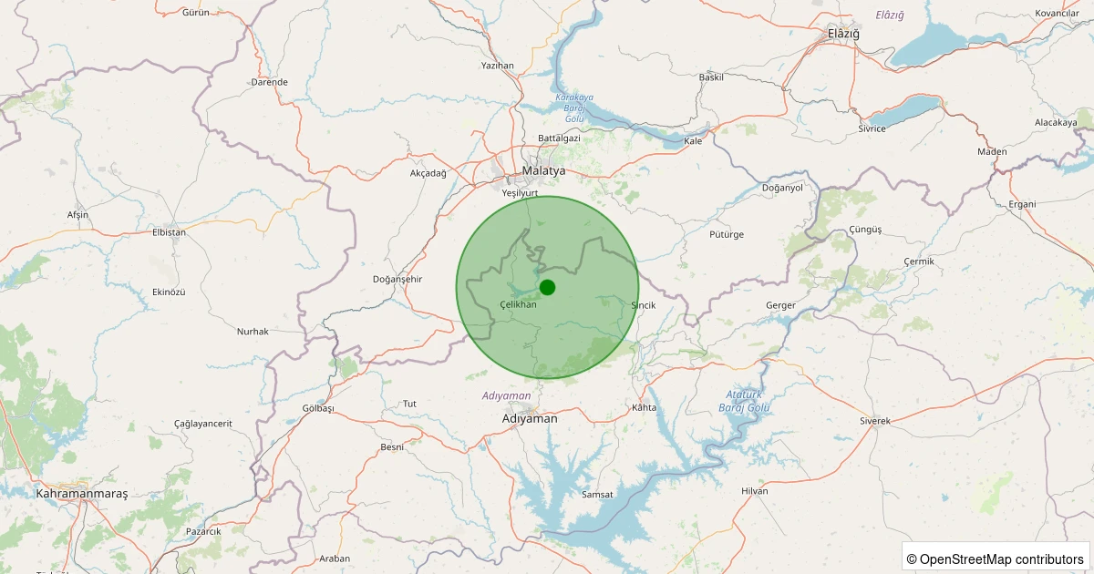Son 7 gün içinde Çelikhan - Taşdamlar Köyü noktasından 100 km yarıçap içerisinde meydana gelen diğer depremler:
