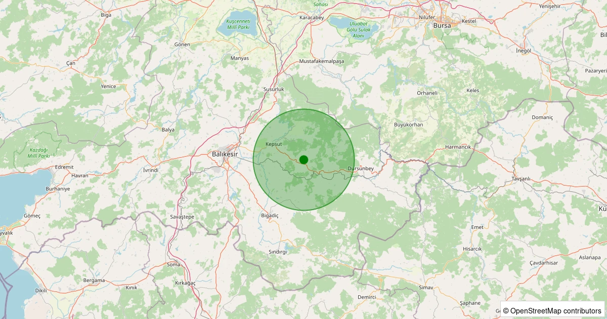 Son 7 gün içinde Kepsut - Karagöz noktasından 100 km yarıçap içerisinde meydana gelen diğer depremler: