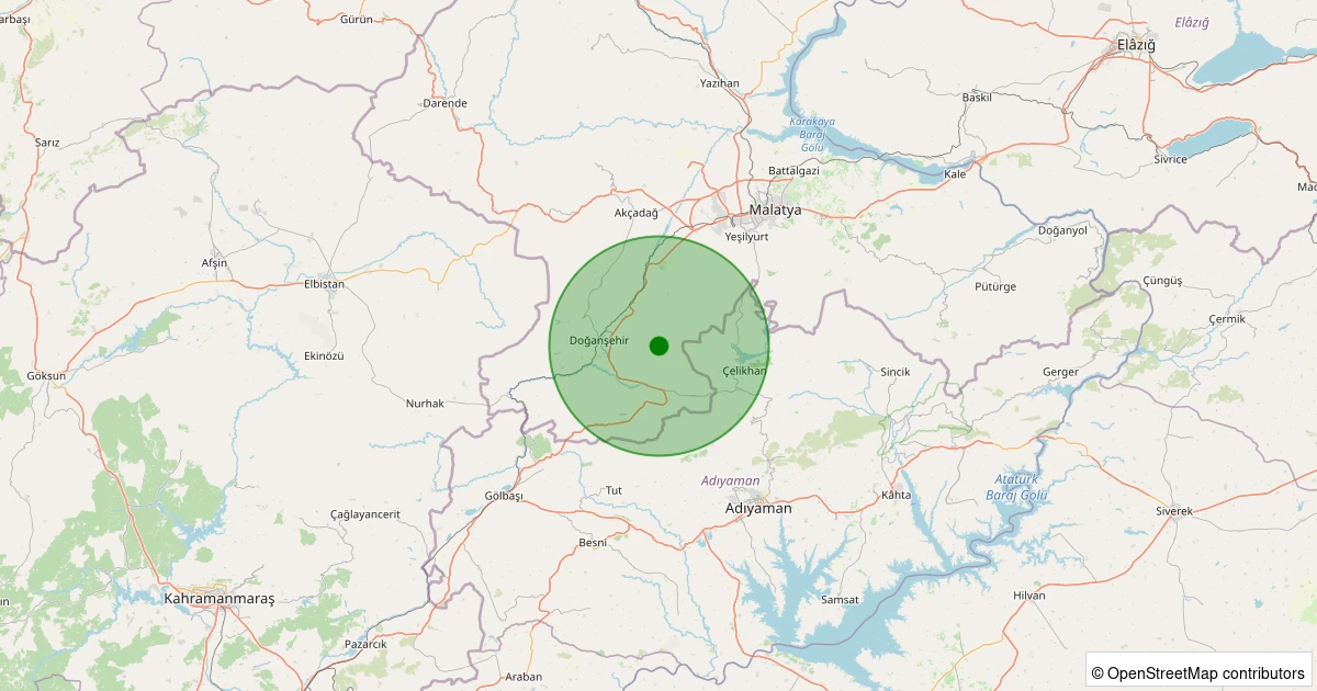 Son 7 gün içinde Doğanşehir - Sürgü noktasından 100 km yarıçap içerisinde meydana gelen diğer depremler: