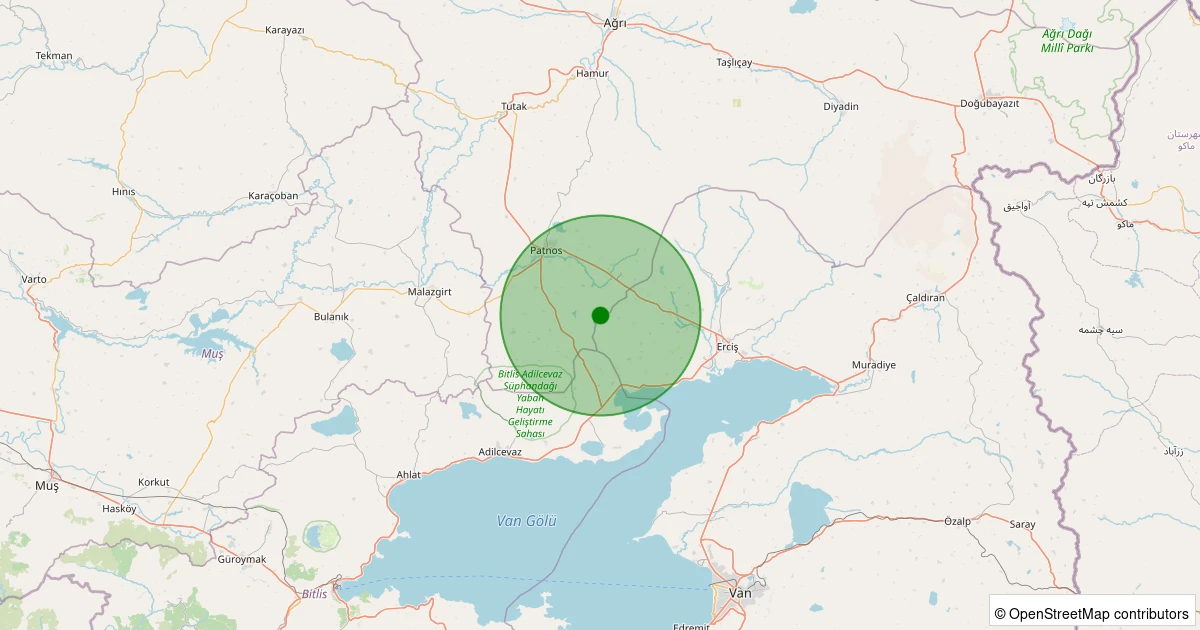 Son 7 gün içinde Patnos noktasından 100 km yarıçap içerisinde meydana gelen diğer depremler: