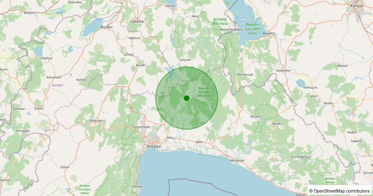 Son 7 gün içinde Serik - Hasdümen noktasından 100 km yarıçap içerisinde meydana gelen diğer depremler:
