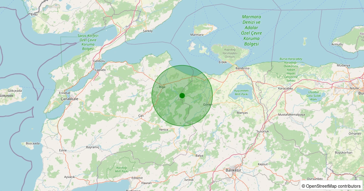 Son 7 gün içinde Gönen - Tahtalı noktasından 100 km yarıçap içerisinde meydana gelen diğer depremler: