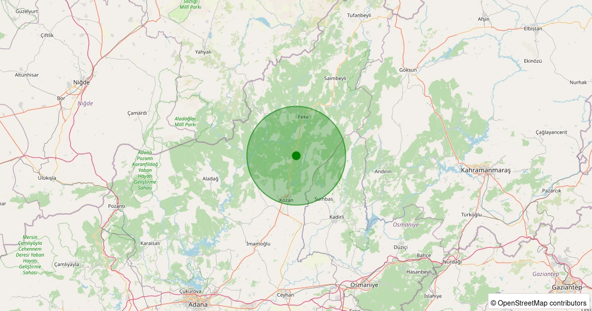 Son 7 gün içinde Kozan - Çamdere noktasından 100 km yarıçap içerisinde meydana gelen diğer depremler: