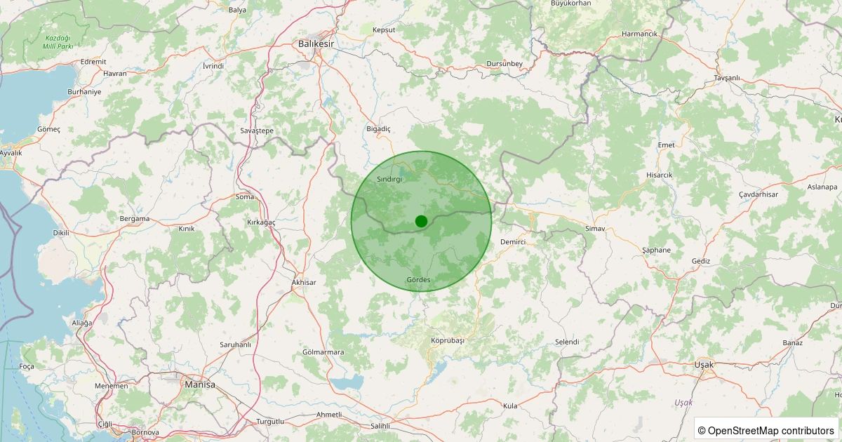 Son 7 gün içinde Sındırgı - Yüreğil/Merkez noktasından 100 km yarıçap içerisinde meydana gelen diğer depremler: