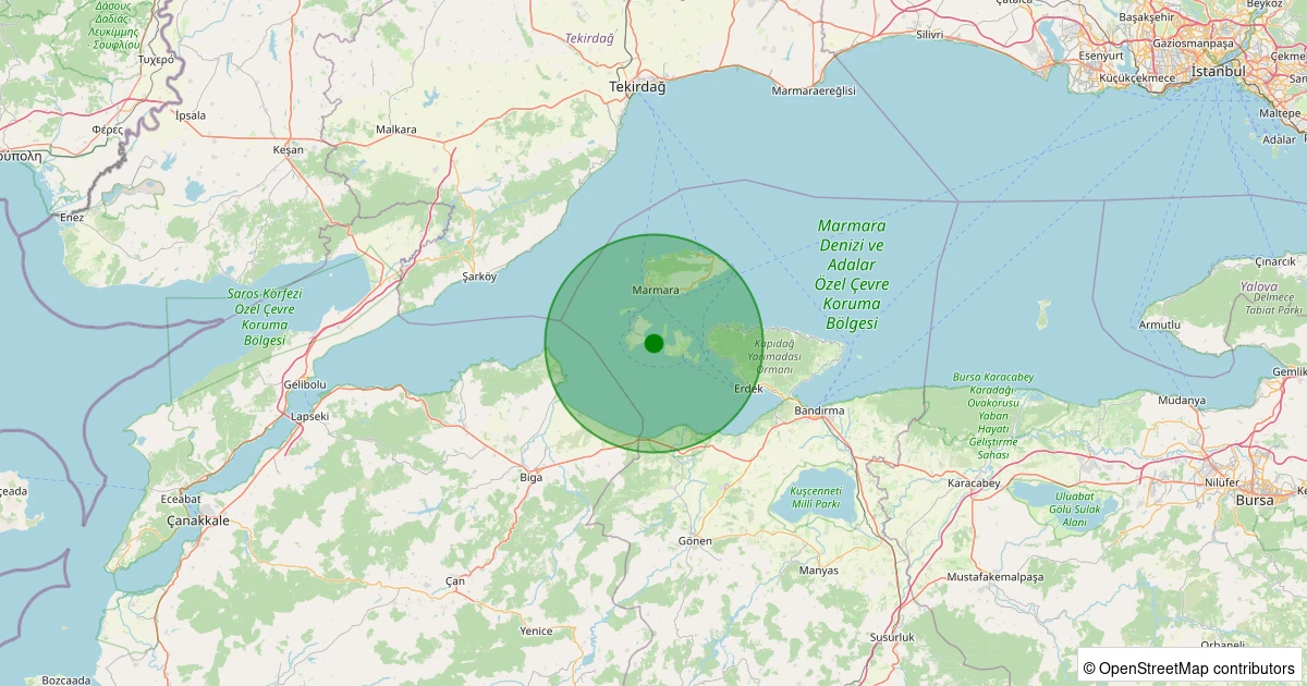Son 7 gün içinde HARMANLI-ERDEK noktasından 100 km yarıçap içerisinde meydana gelen diğer depremler: