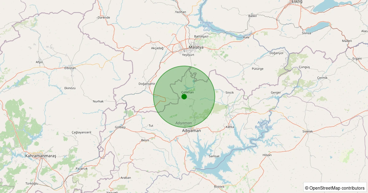 Son 7 gün içinde Çelikhan - Bıstıkan noktasından 100 km yarıçap içerisinde meydana gelen diğer depremler: