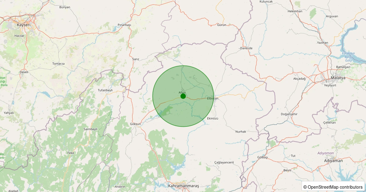 Son 7 gün içinde Afşin - Efsusturan noktasından 100 km yarıçap içerisinde meydana gelen diğer depremler: