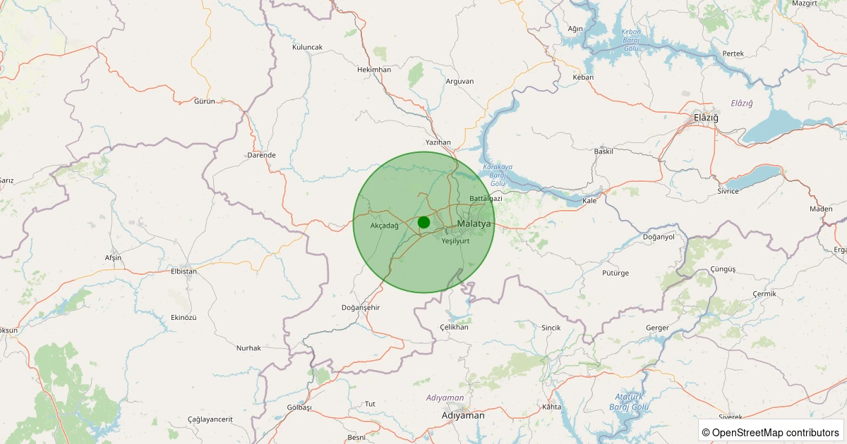 Son 7 gün içinde Yeşilyurt - Kuşdoğan noktasından 100 km yarıçap içerisinde meydana gelen diğer depremler: