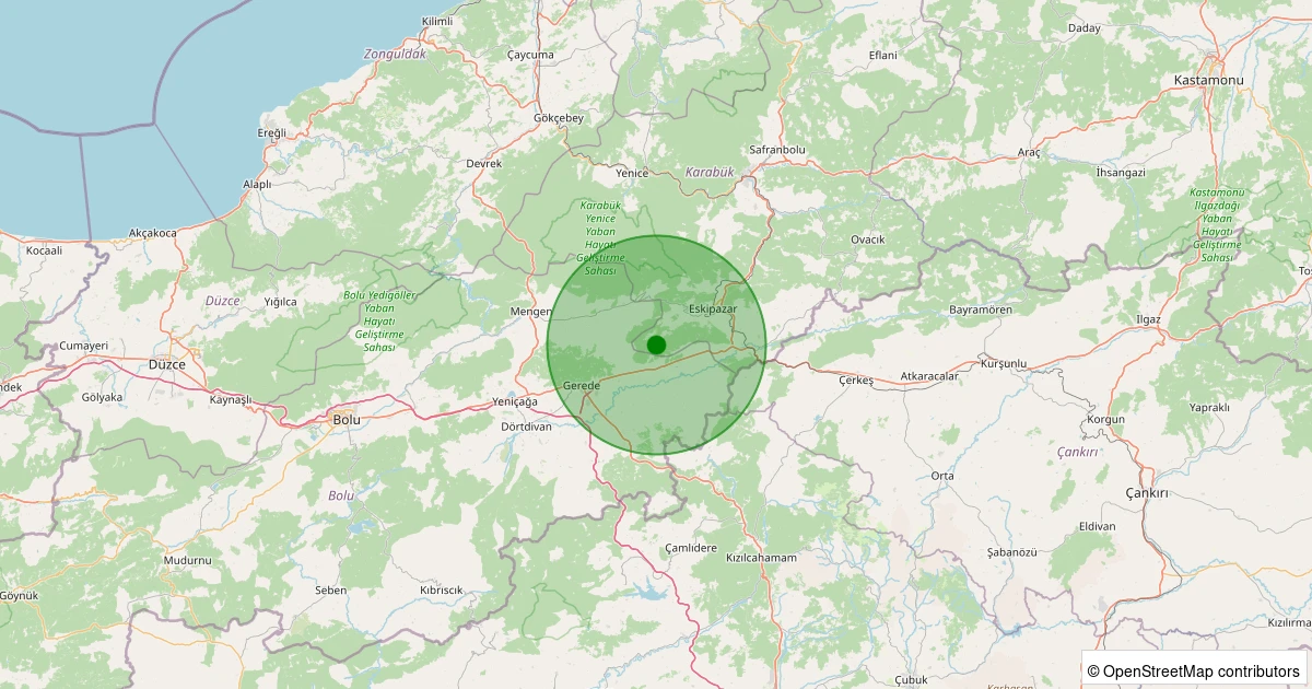 Son 7 gün içinde Eskipazar - Kabaarmut Köyü noktasından 100 km yarıçap içerisinde meydana gelen diğer depremler: