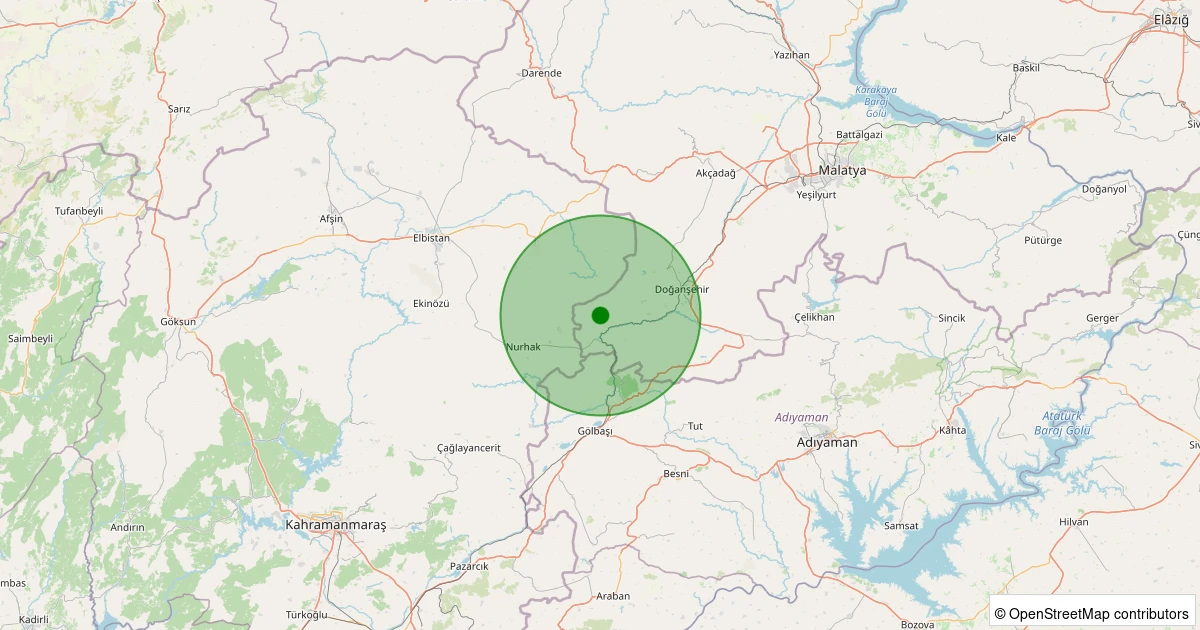 Son 7 gün içinde Doğanşehir - Beğre noktasından 100 km yarıçap içerisinde meydana gelen diğer depremler: