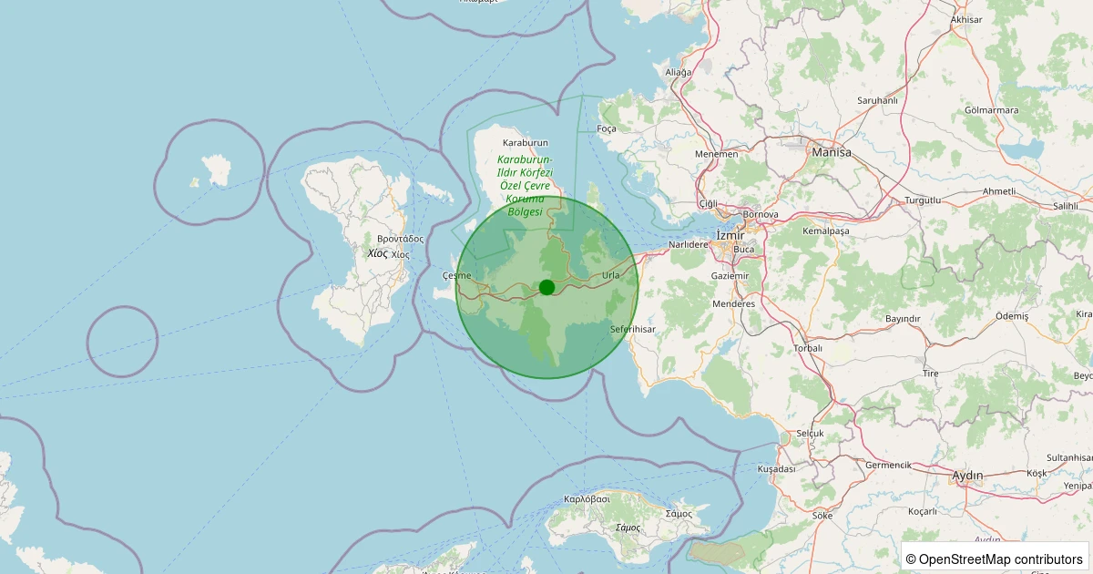 Son 7 gün içinde Urla - Birgi Köyü noktasından 100 km yarıçap içerisinde meydana gelen diğer depremler: