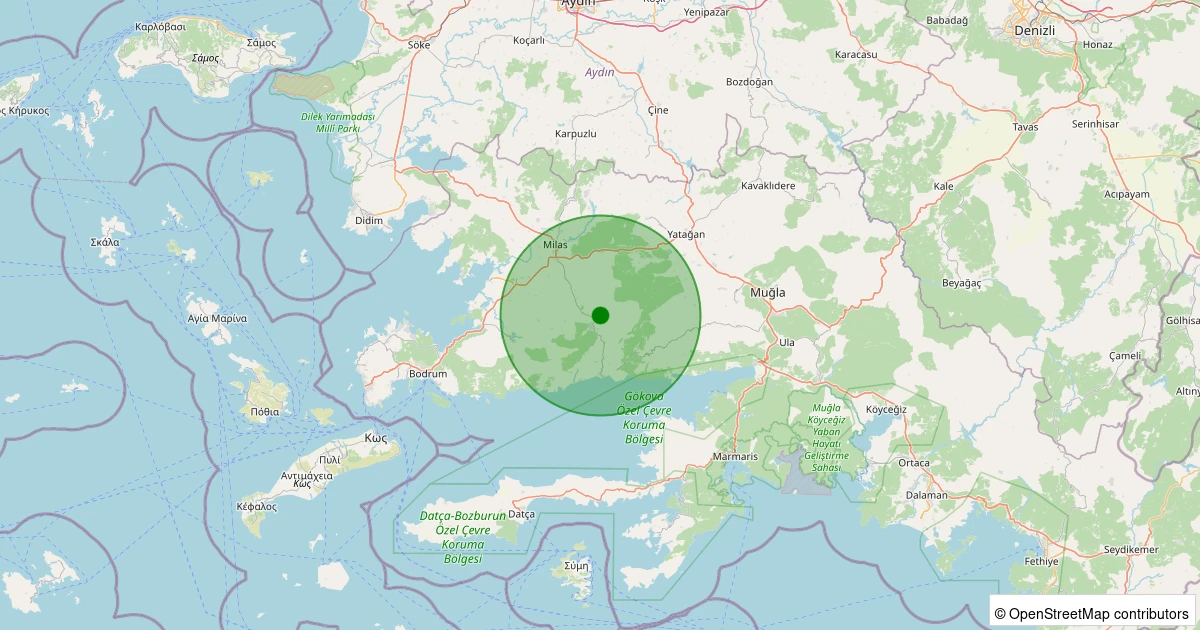 Son 7 gün içinde Milas - Karacaağaç noktasından 100 km yarıçap içerisinde meydana gelen diğer depremler: