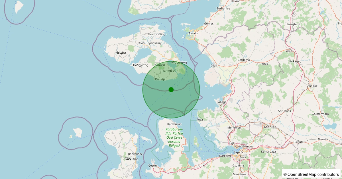 Son 7 gün içinde MIDILLI noktasından 100 km yarıçap içerisinde meydana gelen diğer depremler: