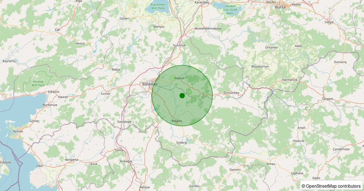 Son 7 gün içinde Kepsut - Dombaydere noktasından 100 km yarıçap içerisinde meydana gelen diğer depremler: