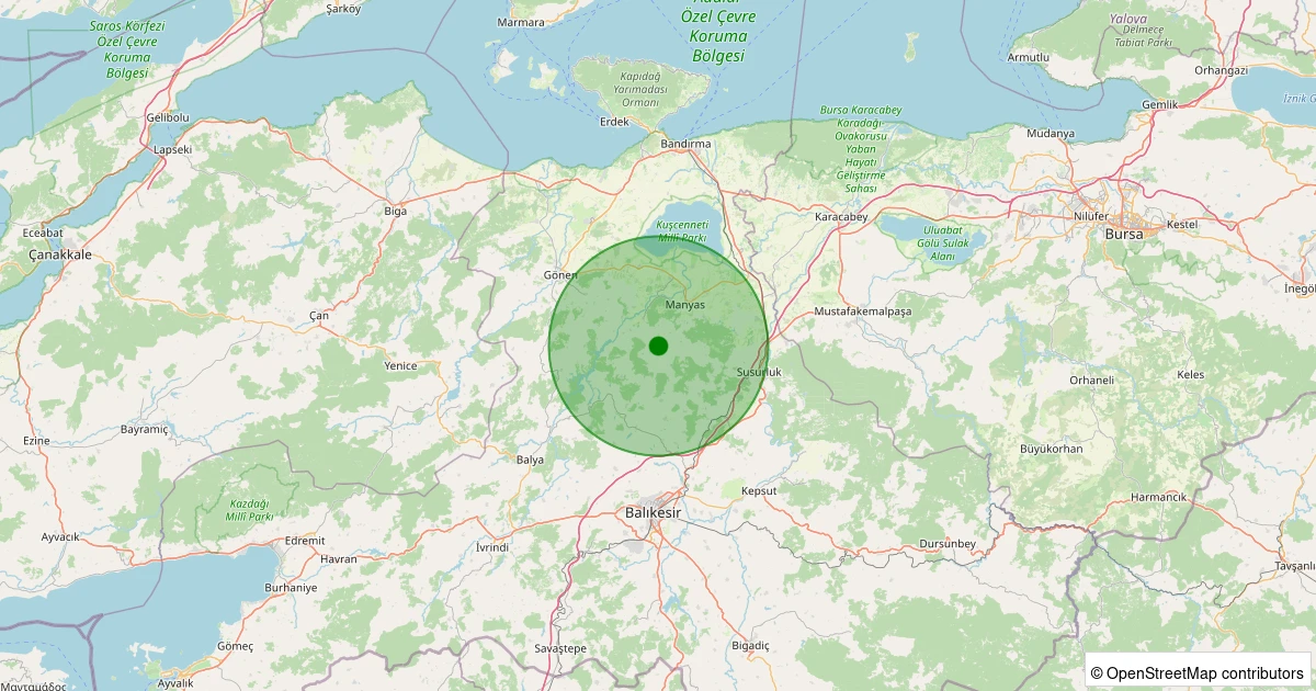 Son 7 gün içinde Manyas - Koçoğlu noktasından 100 km yarıçap içerisinde meydana gelen diğer depremler: