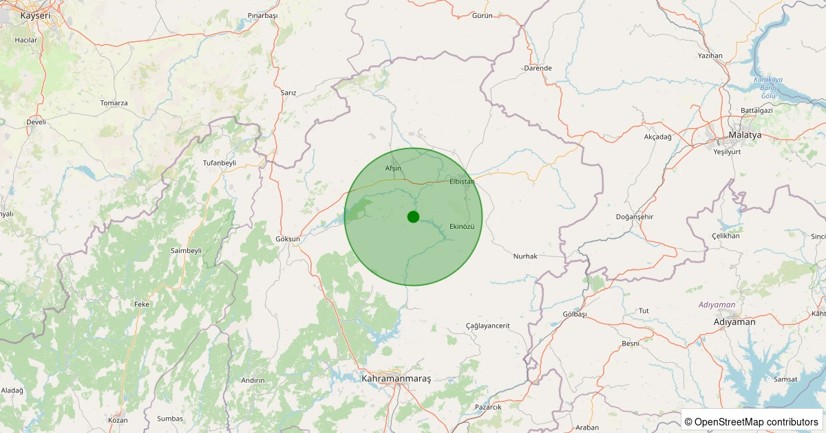 Son 7 gün içinde Göksun - Karadut noktasından 100 km yarıçap içerisinde meydana gelen diğer depremler:
