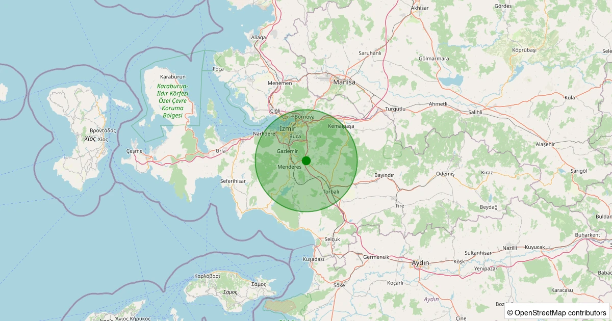 Son 7 gün içinde Buca - Karacaağaç Köyü noktasından 100 km yarıçap içerisinde meydana gelen diğer depremler:
