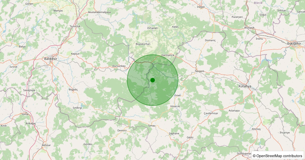 Son 7 gün içinde Simav - Çulhalar Köyü noktasından 100 km yarıçap içerisinde meydana gelen diğer depremler: