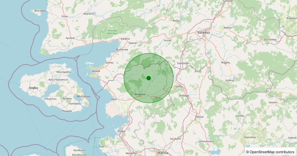 Son 7 gün içinde Bergama - Yortanlı noktasından 100 km yarıçap içerisinde meydana gelen diğer depremler: