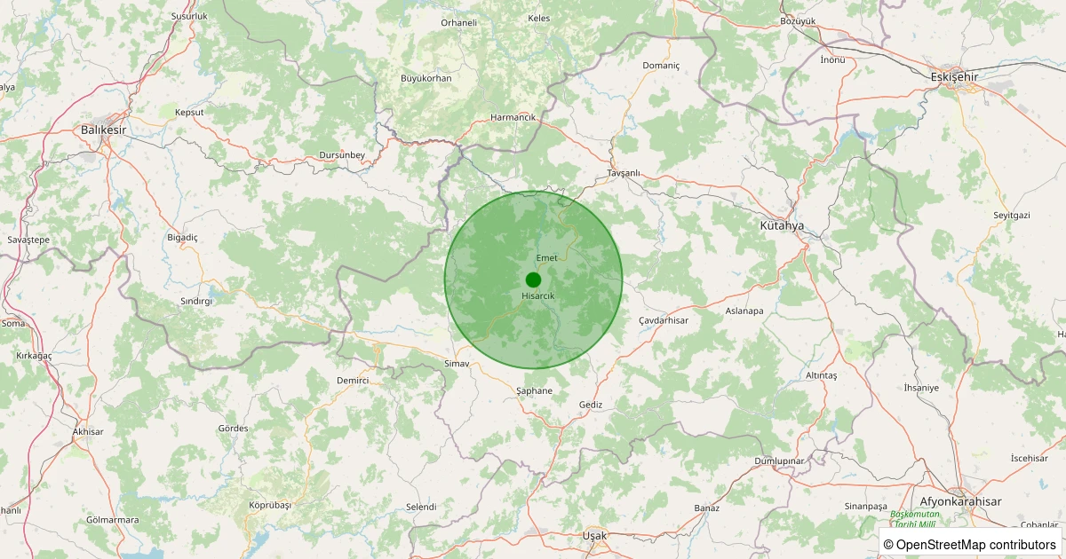 Son 7 gün içinde Emet - Doğanlar Köyü noktasından 100 km yarıçap içerisinde meydana gelen diğer depremler: