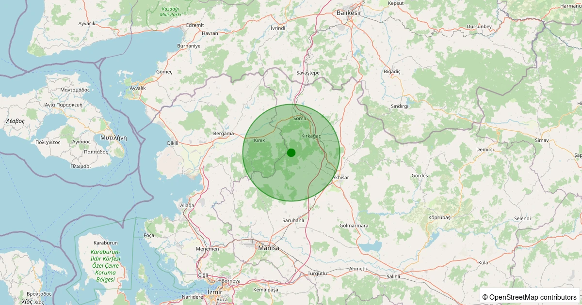 Son 7 gün içinde Akhisar - Evkafteke Köyü noktasından 100 km yarıçap içerisinde meydana gelen diğer depremler: