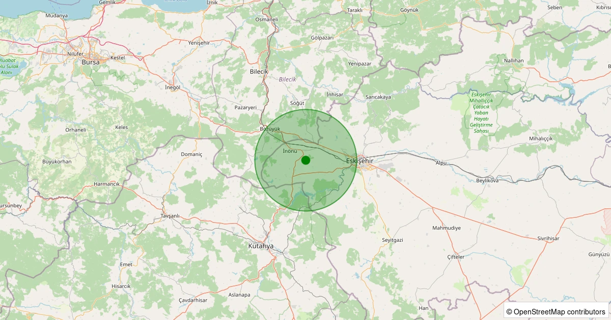 Son 7 gün içinde İnönü - Oklubalı noktasından 100 km yarıçap içerisinde meydana gelen diğer depremler: