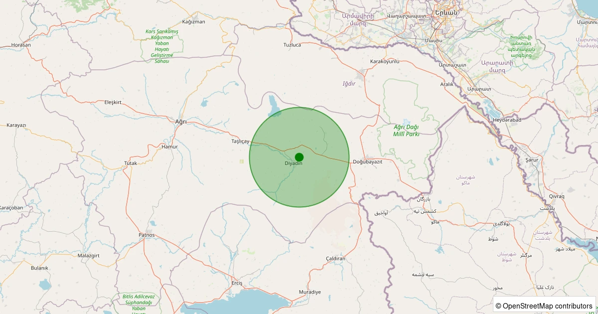 Son 7 gün içinde Diyadin - Atatürk noktasından 100 km yarıçap içerisinde meydana gelen diğer depremler: