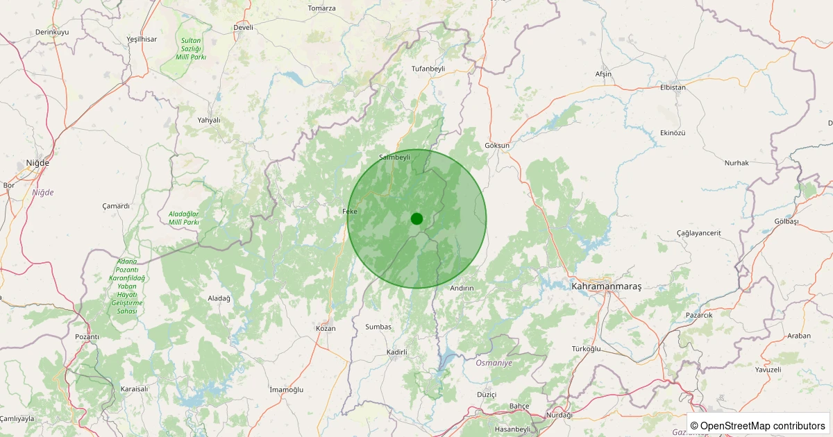 Son 7 gün içinde Saimbeyli - Kapaklıkuyu noktasından 100 km yarıçap içerisinde meydana gelen diğer depremler: