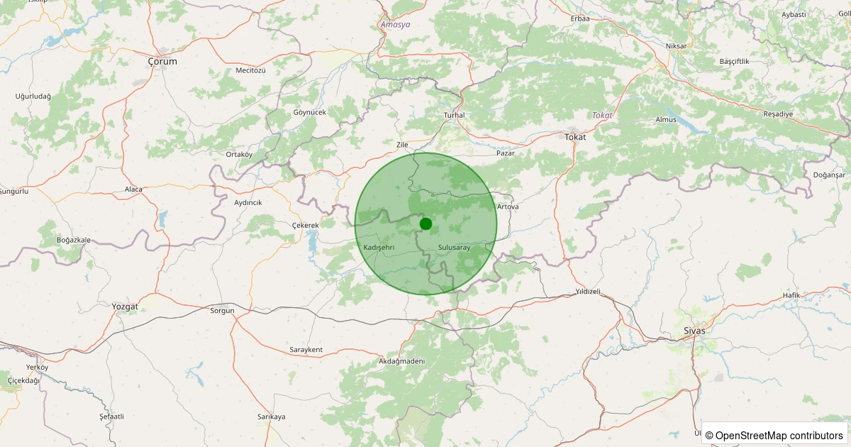 Son 7 gün içinde Sulusaray - Tekkeyeni Köyü noktasından 100 km yarıçap içerisinde meydana gelen diğer depremler: