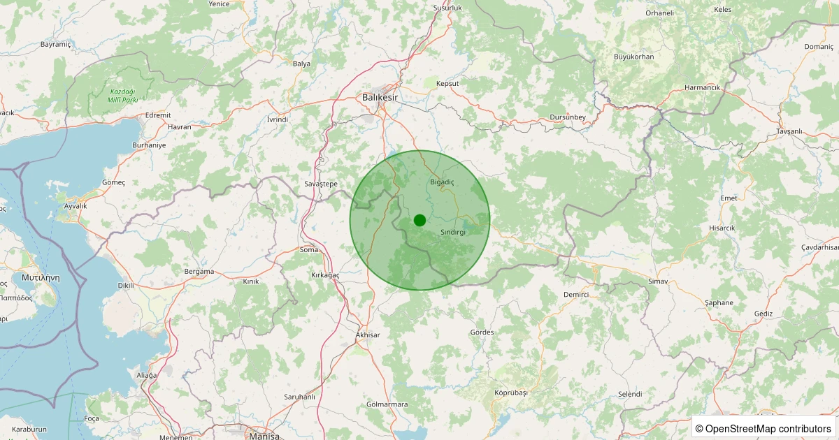 Son 7 gün içinde Sındırgı - Alacaatlı noktasından 100 km yarıçap içerisinde meydana gelen diğer depremler: