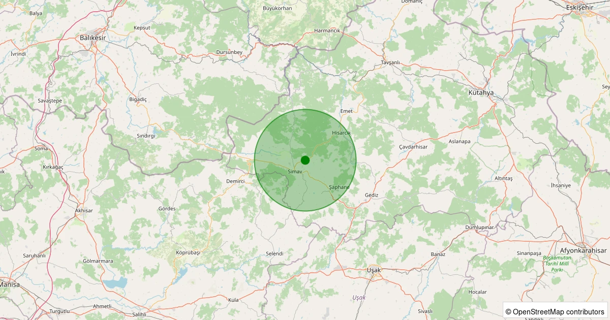 Son 7 gün içinde Simav - Ahlatlıçeşme Köyü noktasından 100 km yarıçap içerisinde meydana gelen diğer depremler: