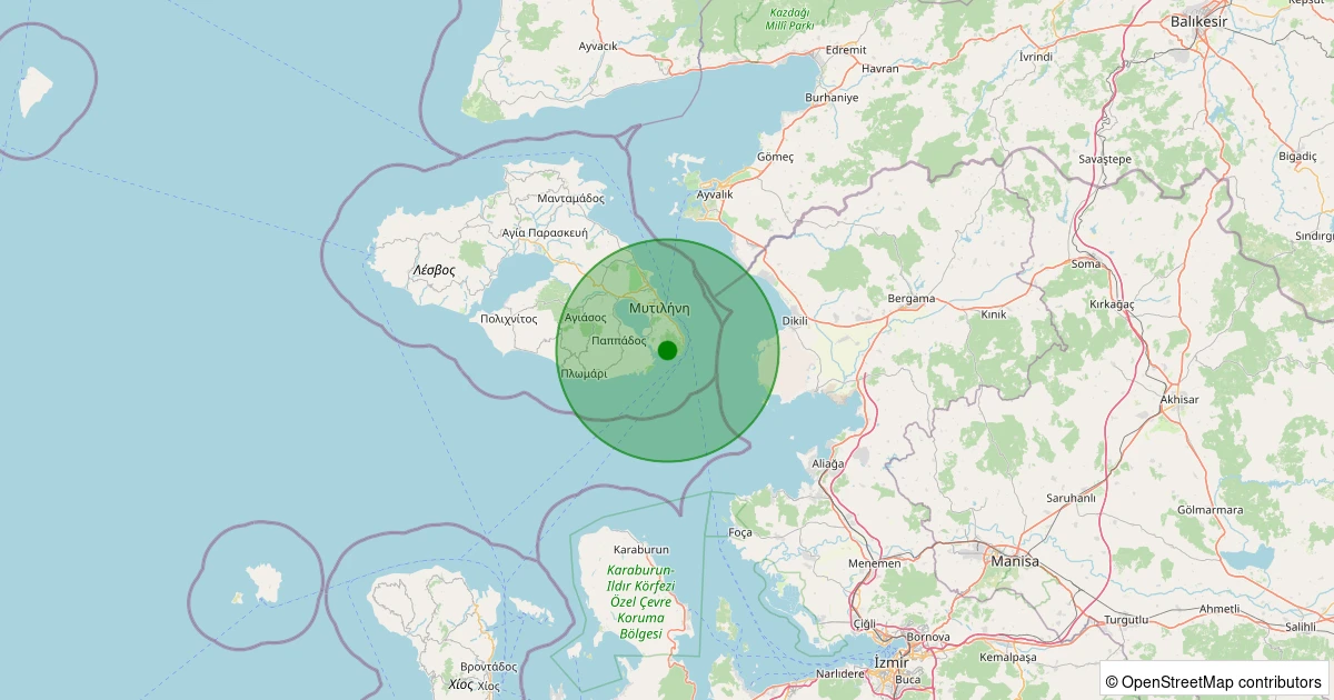 Son 7 gün içinde Ege Denizi, Midilli Adası (Lesvos) - [21.71 km] Dikili (İzmir) noktasından 100 km yarıçap içerisinde meydana gelen diğer depremler: