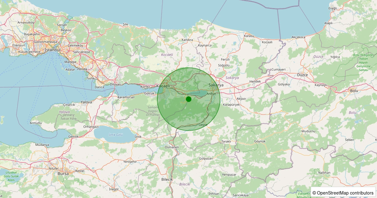 Son 7 gün içinde Sapanca - Kurtköy-Dibektaş noktasından 100 km yarıçap içerisinde meydana gelen diğer depremler: