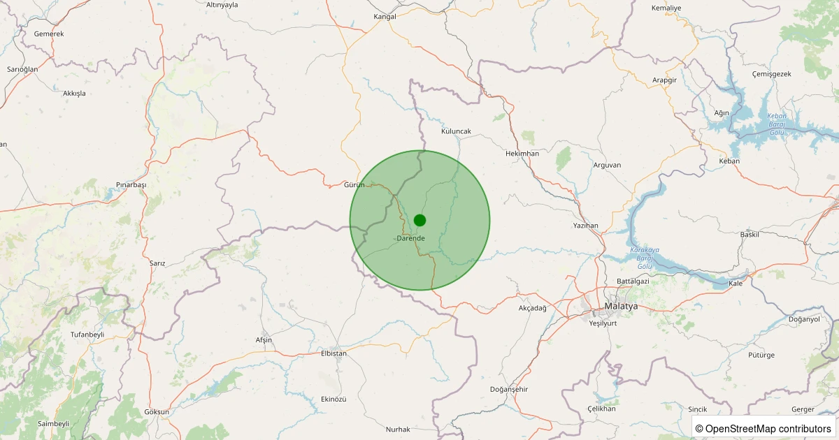 Son 7 gün içinde Darende - Kavak noktasından 100 km yarıçap içerisinde meydana gelen diğer depremler: