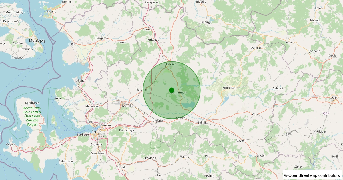 Son 7 gün içinde Gölmarmara - Tiyenli noktasından 100 km yarıçap içerisinde meydana gelen diğer depremler: