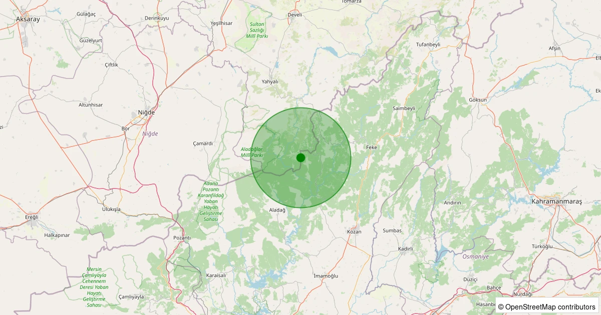Son 7 gün içinde Yahyalı - Çubuk Harmanı noktasından 100 km yarıçap içerisinde meydana gelen diğer depremler: