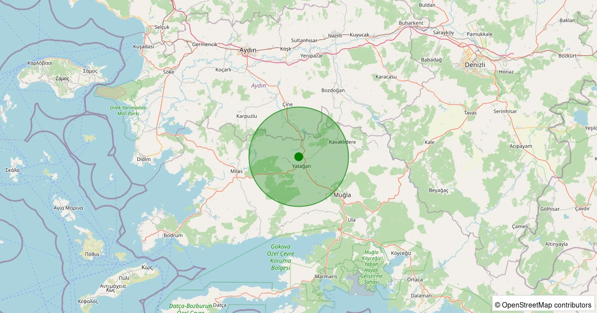 Son 7 gün içinde Yatağan - Nebiköy noktasından 100 km yarıçap içerisinde meydana gelen diğer depremler: