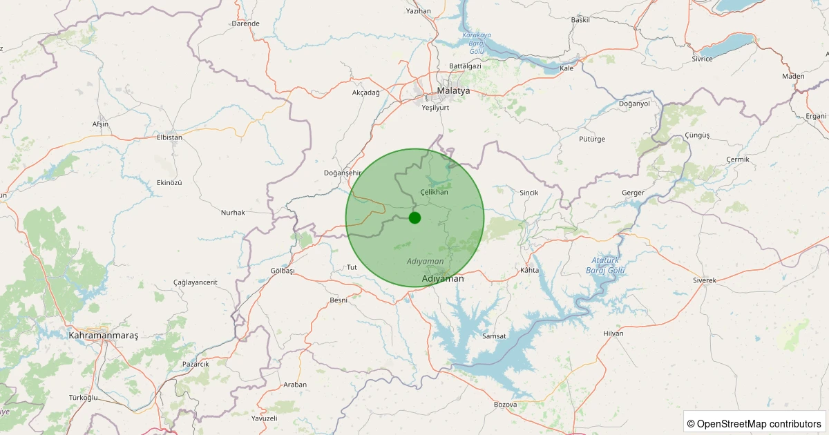 Son bir hafta içerisinde Adıyaman şehri Merkez - Yazıbaşı Köyü noktasından 100 km yarıçap içerisinde toplamda 187 deprem kaydedilmiştir. Bu depremlerden en büyüğü 4.8 büyüklüğünde ve en sığ odaklısı 0.00 kilometre derinlikte gerçekleşmiştir.