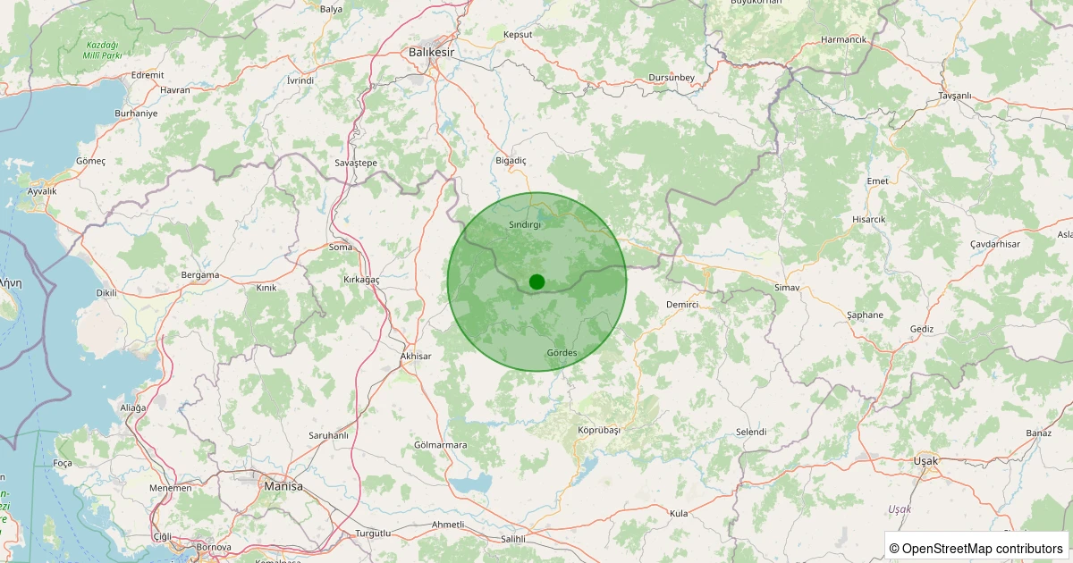Son 7 gün içinde Sındırgı - Kınık noktasından 100 km yarıçap içerisinde meydana gelen diğer depremler: