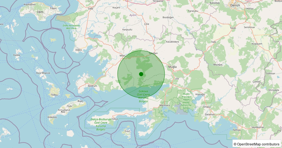 Son 7 gün içinde Milas - Yoğunoluk noktasından 100 km yarıçap içerisinde meydana gelen diğer depremler: