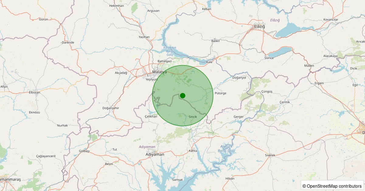 Son 7 gün içinde Battalgazi - Gülümuşağı Köyü noktasından 100 km yarıçap içerisinde meydana gelen diğer depremler: