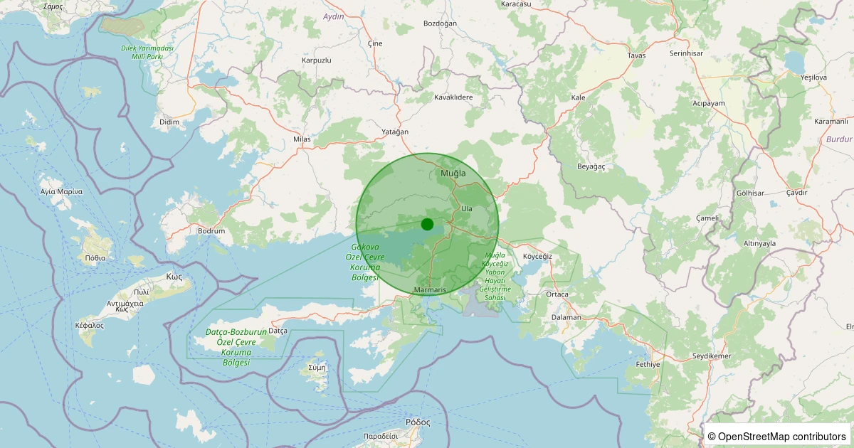 Son 7 gün içinde Menteşe noktasından 100 km yarıçap içerisinde meydana gelen diğer depremler: