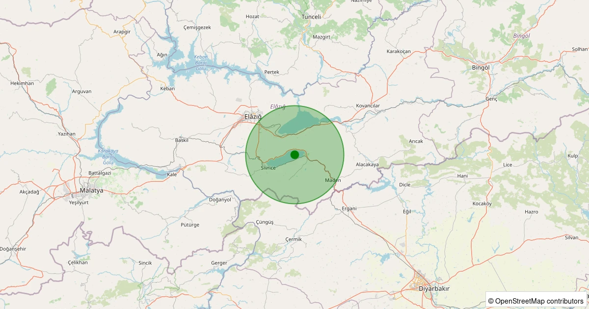 Son bir hafta içerisinde Elazığ şehri Merkez noktasından 100 km yarıçap içerisinde toplamda 111 deprem kaydedilmiştir. Bu depremlerden en büyüğü 2.8 büyüklüğünde ve en sığ odaklısı 2.70 kilometre derinlikte gerçekleşmiştir.
