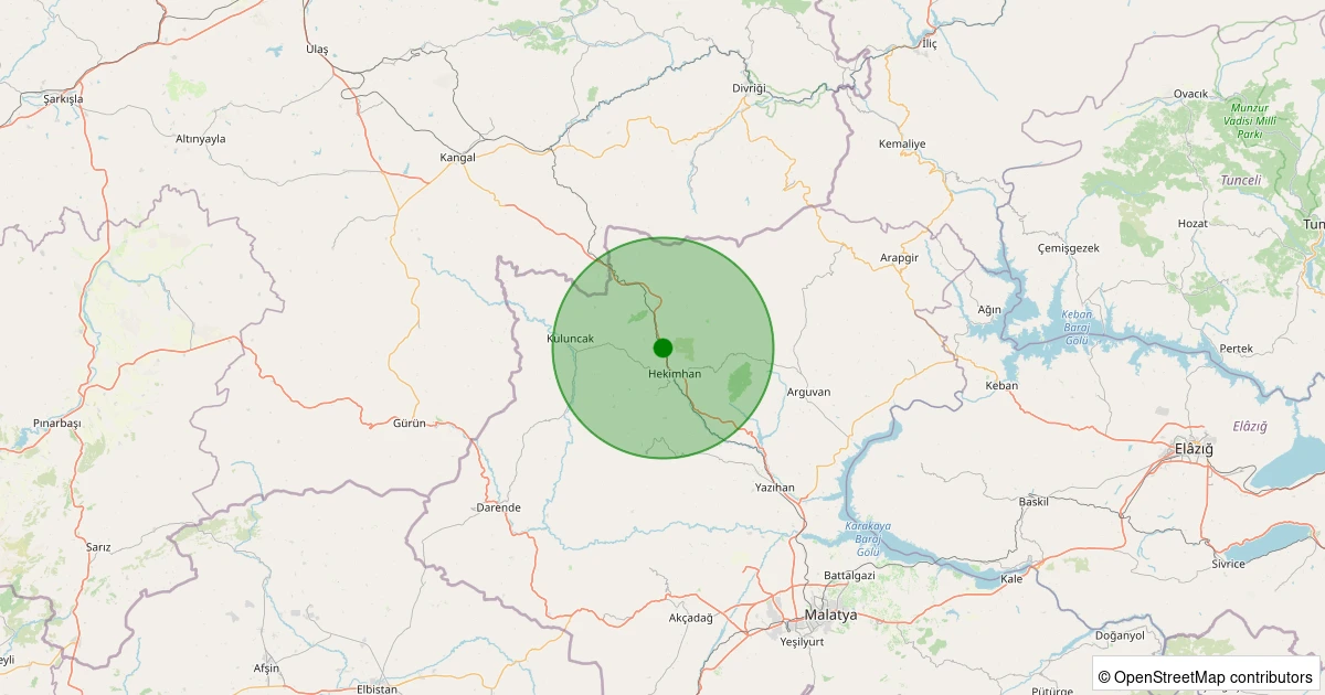 Son 7 gün içinde Hekimhan - Boğazgören Köyü noktasından 100 km yarıçap içerisinde meydana gelen diğer depremler: